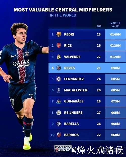 全球中前卫身价排名前十:佩德里1.4亿领跑,赖斯和巴尔韦德并列第二